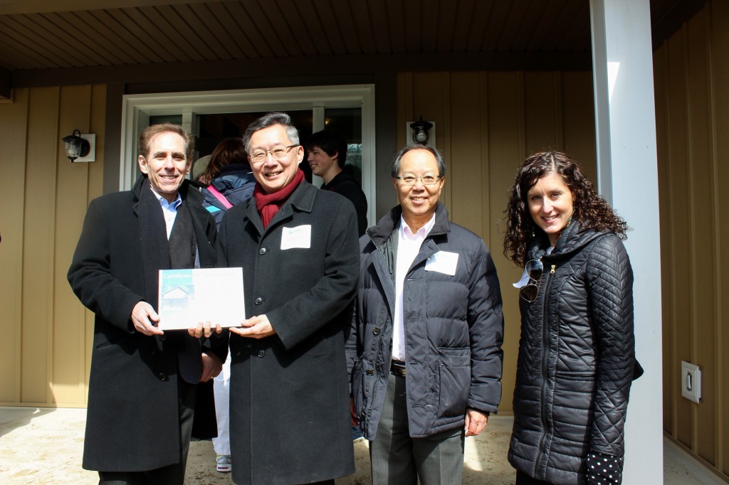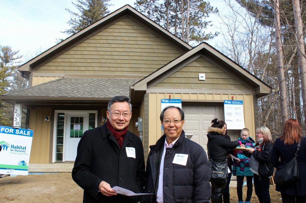 GEORGINA – March 31 marked a happy milestone for the Living Group of Companies, as Chairman Stephen Wong and President William Lau joined Habitat for Humanity GTA to help celebrate putting the “SOLD” sign on a very special home – one that Living Group helped build via raising funds as a corporate sponsor, and also by rolling up our sleeves and doing some construction work at the site last September.