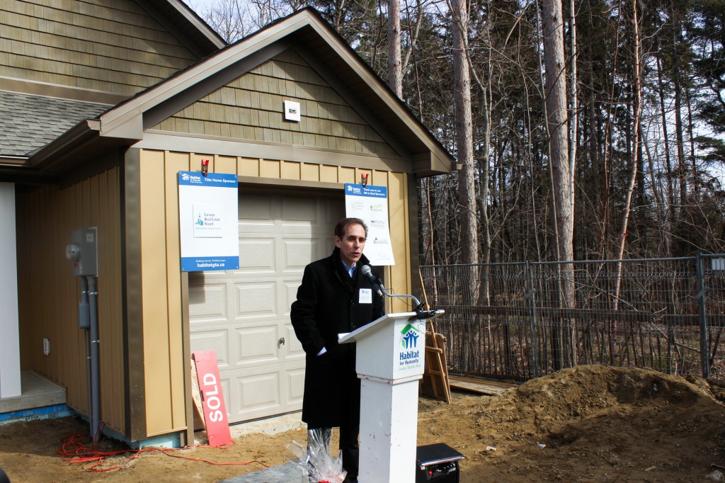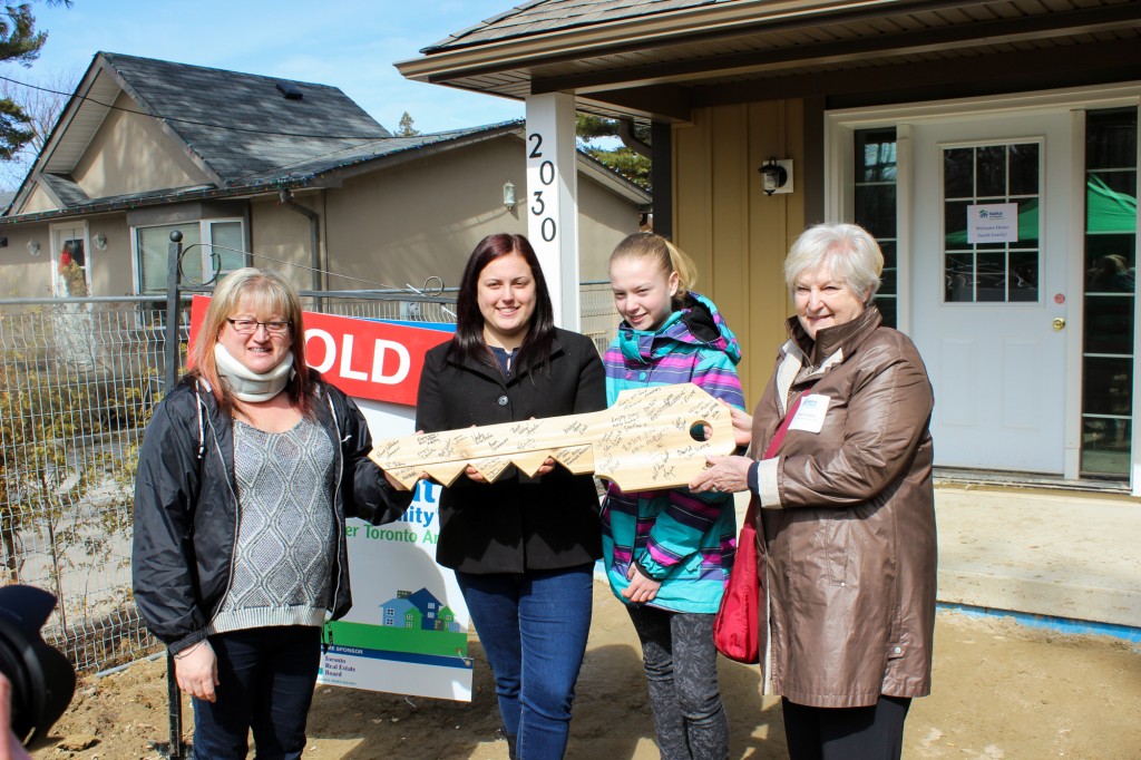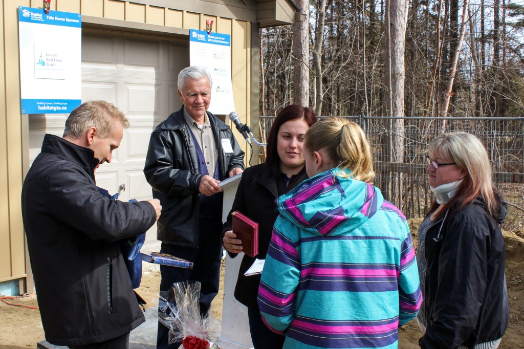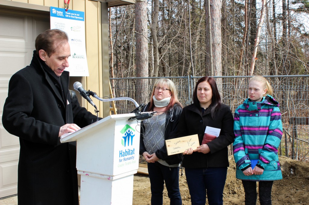 Tuesday’s event, which was held on the site of the newly-completed home in Jackson’s Point, was attended by a mixture of corporate sponsors, site volunteers, and hard-working Habitat for Humanity staff members, as well as a handful of prominent community members, including Mayor Margaret Quirk.