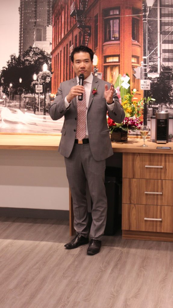 Branch manager Isaac Quan got proceedings underway with a speech outlining his hopes for the branch and pride at being responsible for such a prime location. Broker of Record Kelvin Wong spoke next and outlined the company’s deep roots and long connection to the city of Toronto.