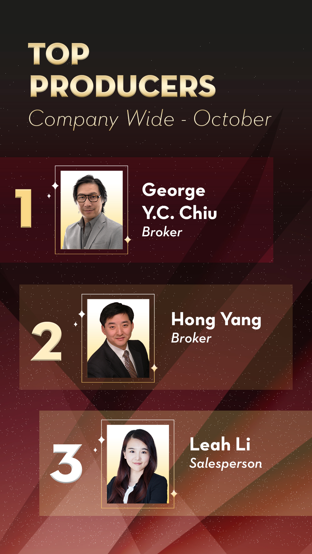 Congratulations to all of you for the amazing work you did in October. The market has been difficult as buyers and sellers continue to responding to the changing environment brought about by recent dramatic increases in interest rates. However, our team has continued to do excellent work, helping their clients to navigate the current conditions and get the best deals they can.